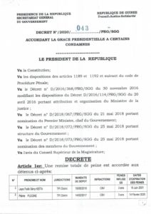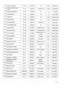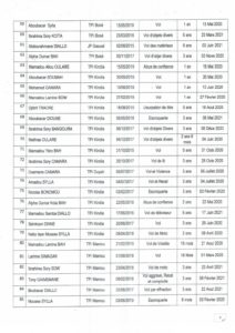 Voici la copie de la liste des 233 détenus graciés