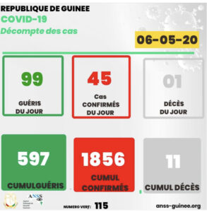 Coronavirus en Guinée : 99 nouveaux guéris, 45 cas positifs ce mercredi 06 mai 2020 !