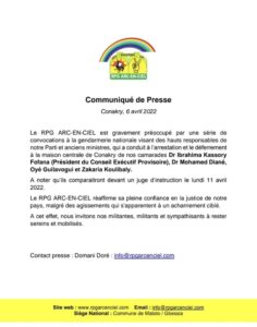 Suite à la détention du président du conseil exécutif provisoire du parti Ibrahima Kassory Fofana et des anciens ministres Mohamed Diané, Oyé Guilavogui et Zakaria Koulibaly, à la maison centrale de Conakry, ce mercredi 06 avril 2022