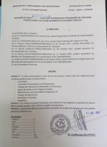 Le ministre de l’enseignement pré-universitaire et de l’alphabétisation, a procédé à la suppression provisoire de plusieurs postes dans les écoles publiques. Guillaume Hawing, invite à cet effet ceux qui occupaient ces postes à rejoindre les salles de classe.