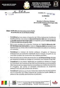 L’entreprise American Beverages SARL en charge de la production des jus 24h Energy vient d’être autorisée à rouvrir sa chaine de production. C’est un acte de la Ministre du commerce, de l’industrie et des PME.
