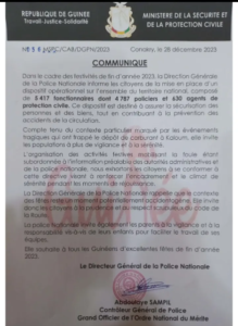 GUINEE- Fêtes de fin d’année: 5 417 agents de police et de la protection civile mobilisés (Communiqué)
