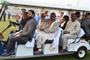 En séjour au pays de Mahatma GANDHI, le Président du Conseil National de la Transition a pris part ce vendredi 26 janvier 2024, à la célébration du jour de la République ou fête de la Constitution indienne. À l’occasion de ce 75ème anniversaire, le Président du CNT a eu droit à un tour d’honneur dans le stade de l’Institut de technologie industrielle (KIIT), devant plusieurs milliers de personnes. Durant deux heures, l’invité de marque a été gratifié par un impressionnant défilé des différentes composantes socioprofessionnelles, suivi d’un grand spectacle artistique.