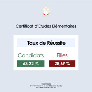 – Certificat d’Études Élémentaires (CEE) : Taux de réussite global de 63,22 %, dont 28,69 % de filles.