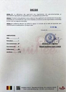 Ci- dessous copie signé de la décision du ministre de l’administration du territoire et de la de la décentralisation: