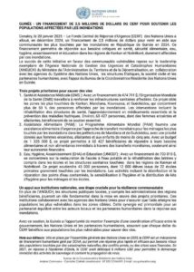 Ce financement, inédit par son ampleur, reflète non seulement la confiance de la communauté internationale envers la Guinée, mais surtout la compétence stratégique de Lancei Touré. Sa vision et sa détermination ont permis de mobiliser des partenaires clés dans un contexte particulièrement délicat. Sous son impulsion, une réponse coordonnée a été mise en œuvre, visant à renforcer les infrastructures de santé, d’hygiène et d’éducation, tout en soutenant les familles les plus vulnérables.