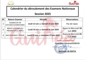 Ci-dessous le calendrier du déroulement des examens nationaux :
