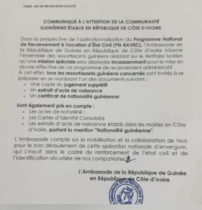 Oui, j’ai vu le communiqué officiel de l’Ambassade de Guinée à Abidjan : ce papier soi-disant technique qui exige des extraits d’acte de naissance et des certificats de nationalité. Vous appelez ça un service public ? Je l’appelle un piège.