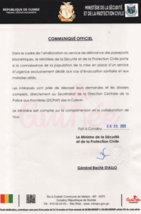 Ce dispositif inédit vise à simplifier et à accélérer le processus d’obtention de passeports pour les cas jugés critiques. Les concernés sont invités à soumettre leurs demandes de passeports, accompagnées des dossiers requis, directement au Secrétariat de la Direction Centrale de la Police aux Frontières (DCPAF) située à Coleah.