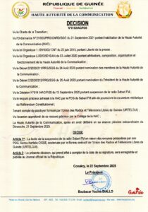 C’est une bonne nouvelle pour Sabari FM et son PDG Sanou Kerfalla Cissé. A la faveur d’une décision prise ce lundi 22 septembre 2025, la Haute Autorité de la Communication a decidé de lever la suspension de Sabari FM.