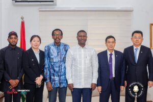 𝐋𝐞 𝐌𝐢𝐧𝐢𝐬𝐭𝐫𝐞 𝐝𝐞 𝐥’𝐄́𝐧𝐞𝐫𝐠𝐢𝐞, 𝐌𝐨𝐧𝐬𝐢𝐞𝐮𝐫 𝐍𝐚𝐦𝐨𝐫𝐲 𝐂𝐚𝐦𝐚𝐫𝐚, a reçu en audience ce vendredi, une délégation chinoise conduite par 𝐌𝐨𝐧𝐬𝐢𝐞𝐮𝐫 𝐘𝐚𝐧𝐠 𝐘𝐢𝐬𝐡𝐞𝐧𝐠, 𝐥𝐞 𝐕𝐢𝐜𝐞-𝐏𝐫𝐞́𝐬𝐢𝐝𝐞𝐧𝐭 𝐝u groupe 𝐂𝐂𝐂𝐂 dont la société filiale 𝐂𝐡𝐢𝐧𝐚 𝐈𝐧𝐭𝐞𝐫𝐧𝐚𝐭𝐢𝐨𝐧𝐚𝐥 𝐖𝐚𝐭𝐞𝐫 & 𝐄𝐥𝐞𝐜𝐭𝐫𝐢𝐜 𝐂𝐨𝐫𝐩𝐨𝐫𝐚𝐭𝐢𝐨𝐧 (𝐂𝐖𝐄) est le partenaire clé de la Guinée dans le développement de projets énergétiques.