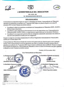 GUINEE- l’intersyndicale de l’éducation dépose un préavis de grève !