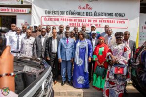 Présidée par 𝐌𝐚𝐝𝐚𝐦𝐞 𝐥𝐚 𝐃𝐢𝐫𝐞𝐜𝐭𝐫𝐢𝐜𝐞 𝐆𝐞́𝐧𝐞́𝐫𝐚𝐥𝐞 𝐝𝐞𝐬 𝐄́𝐥𝐞𝐜𝐭𝐢𝐨𝐧𝐬, cette rencontre s’est déroulée en présence de 𝐌𝐨𝐧𝐬𝐢𝐞𝐮𝐫 𝐥𝐞 𝐃𝐢𝐫𝐞𝐜𝐭𝐞𝐮𝐫 𝐆𝐞́𝐧𝐞́𝐫𝐚𝐥 𝐝𝐞 𝐥’𝐎𝐍𝐄𝐂𝐈 et de son 𝐚𝐝𝐣𝐨𝐢𝐧𝐭, du 𝐃𝐢𝐫𝐞𝐜𝐭𝐞𝐮𝐫 𝐝𝐞𝐬 𝐚𝐟𝐟𝐚𝐢𝐫𝐞𝐬 𝐜𝐢𝐯𝐢𝐥𝐞𝐬 𝐞𝐭 𝐠𝐚𝐫𝐝𝐞 𝐝𝐞𝐬 𝐬𝐜𝐞𝐚𝐮𝐱, représentant Monsieur le 𝐌𝐢𝐧𝐢𝐬𝐭𝐫𝐞 𝐝𝐞 𝐥𝐚 𝐉𝐮𝐬𝐭𝐢𝐜𝐞 ainsi que des 𝐨𝐟𝐟𝐢𝐜𝐢𝐞𝐫𝐬 𝐝𝐞́𝐥𝐞́𝐠𝐮𝐞́𝐬 𝐝𝐞 𝐥’𝐞́𝐭𝐚𝐭 𝐜𝐢𝐯𝐢𝐥 𝐝𝐞𝐬 𝐝𝐢𝐟𝐟𝐞́𝐫𝐞𝐧𝐭𝐞𝐬 𝐜𝐨𝐦𝐦𝐮𝐧𝐞𝐬.